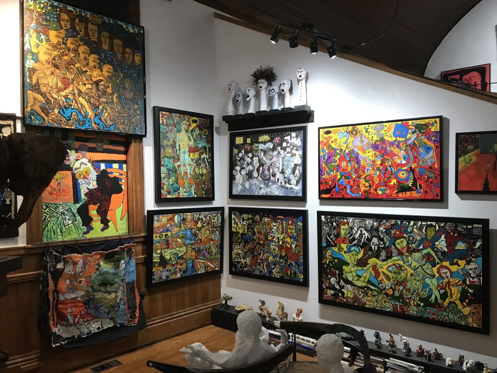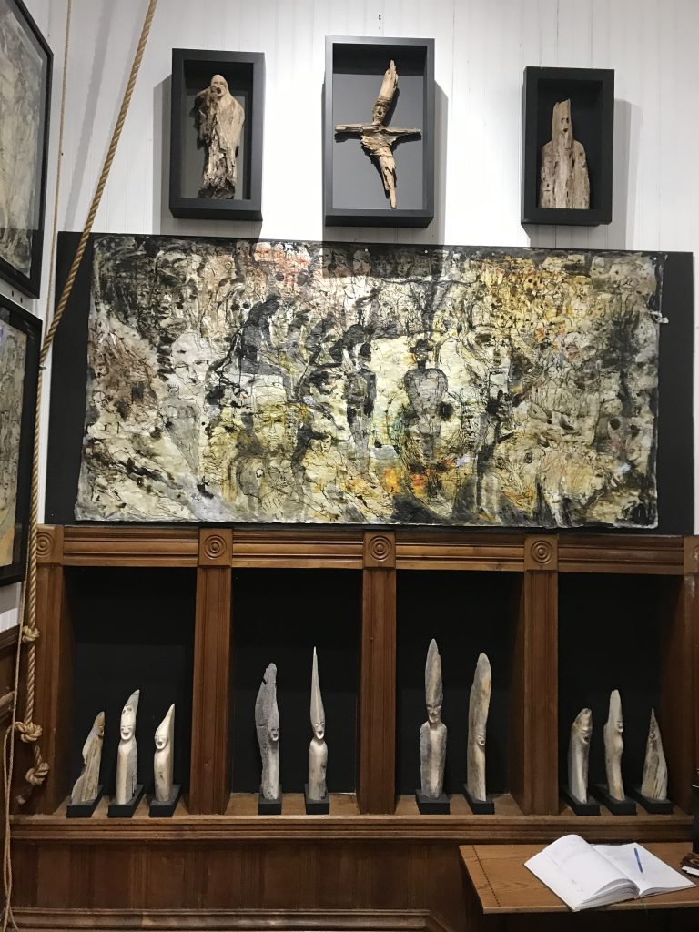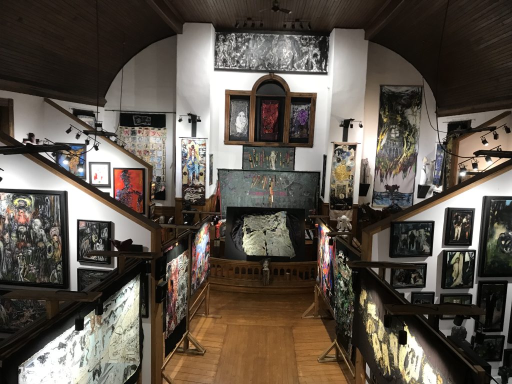 Le M.A.S.C, « Musée d’Art Singulier Contemporain », est installé dans une ancienne église de Mansonville, village collé à la frontière américaine, dans les Cantons de l’est du Québec. Cette position géographique a une valeur symbolique, car pour moi, l’art contemporain est singulier quand il fait de la frontière un pays. Cela signifie que l’artiste singulier n’habite aucun territoire délimité par le marché de l’art et l’Histoire de l’art, mais qu’il porte en lui de quoi transformer ce qui sépare en ce qui unit et créer ainsi son propre espace métissé . L’artiste singulier est aussi celui qui explore ses propres frontières, il est un migrant dans son monde intérieur.