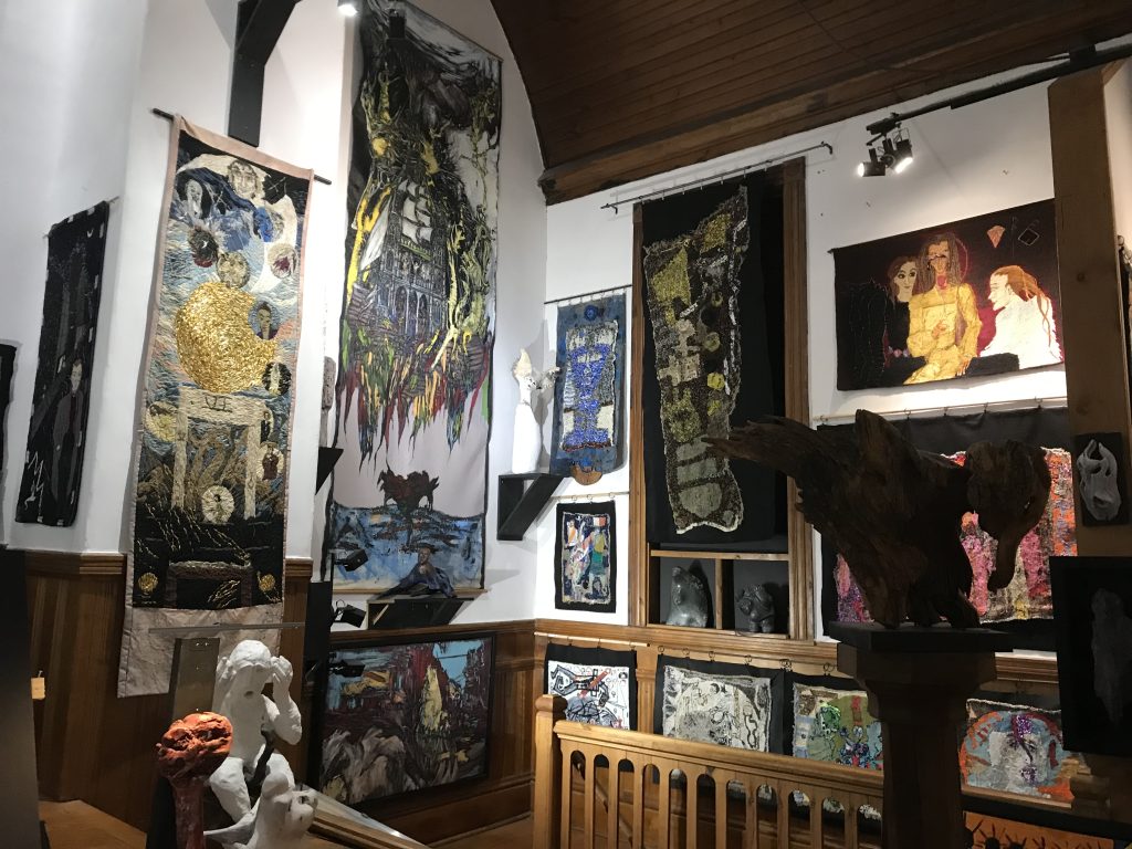 Ouverture de l’exposition Mary Lou Freel du 1 mai au 31 octobre Une rétrospective sur près d’un demi- siècle de tapisseries brodées à la main !