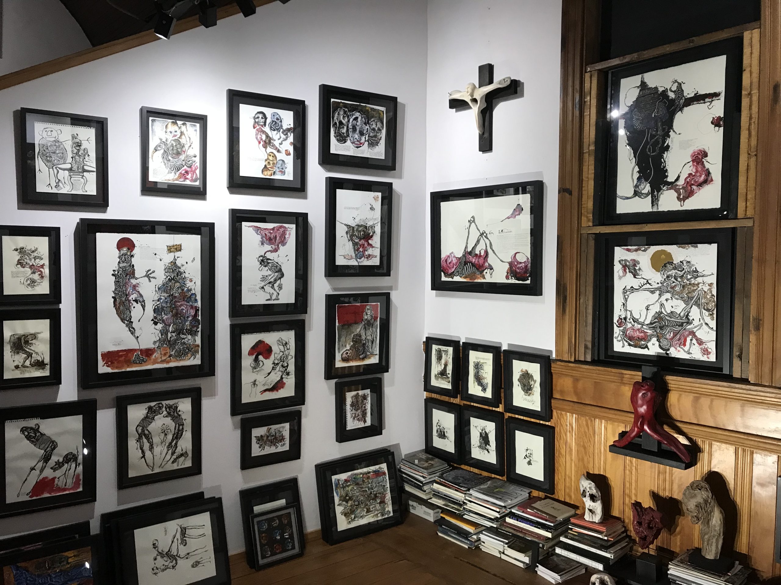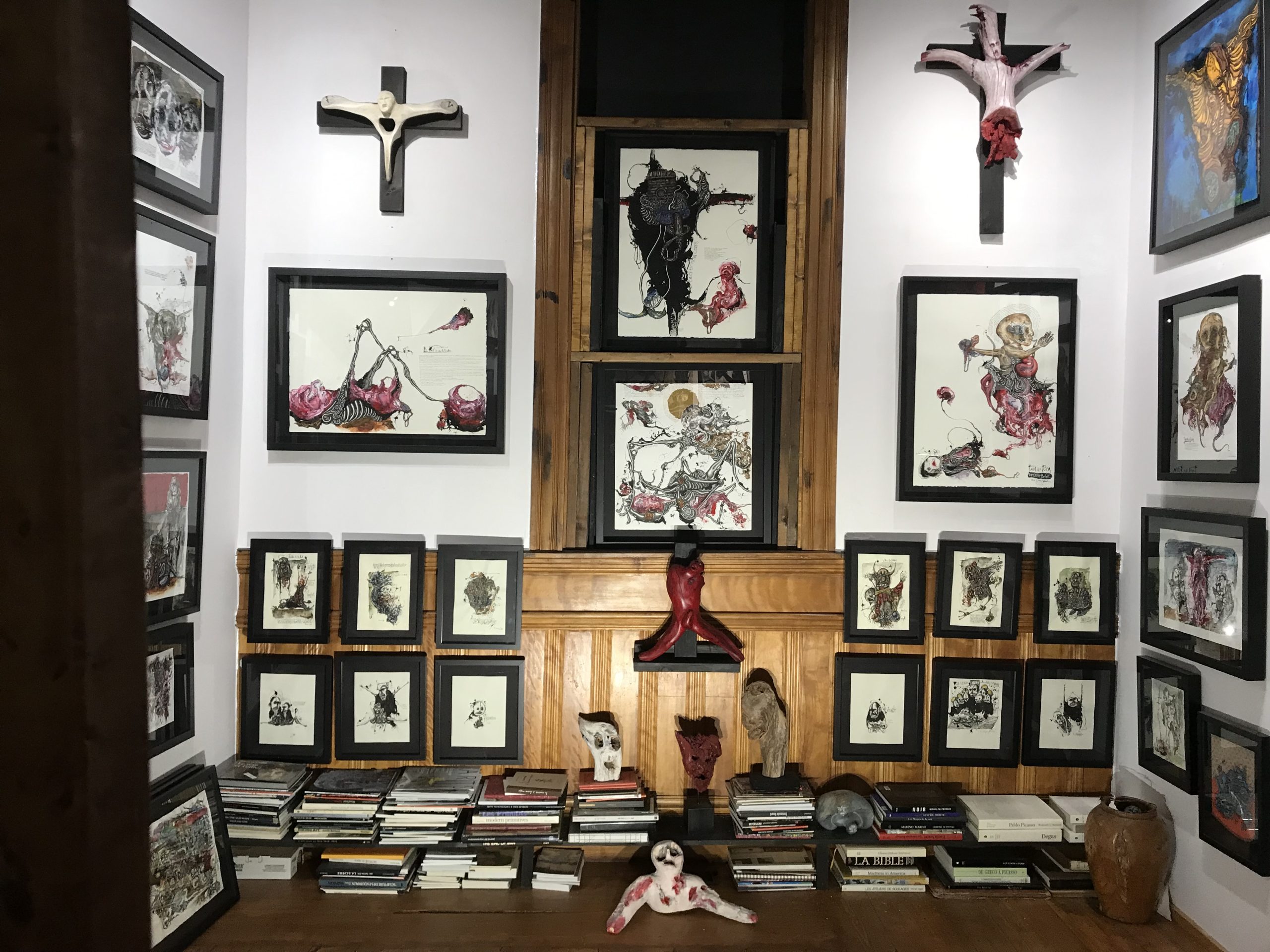 Le M.A.S.C, « Musée d’Art Singulier Contemporain », est installé dans une ancienne église de Mansonville, village collé à la frontière américaine, dans les Cantons de l’est du Québec. Cette position géographique a une valeur symbolique, car pour moi, l’art contemporain est singulier quand il fait de la frontière un pays. Cela signifie que l’artiste singulier n’habite aucun territoire délimité par le marché de l’art et l’Histoire de l’art, mais qu’il porte en lui de quoi transformer ce qui sépare en ce qui unit et créer ainsi son propre espace métissé . L’artiste singulier est aussi celui qui explore ses propres frontières, il est un migrant dans son monde intérieur.