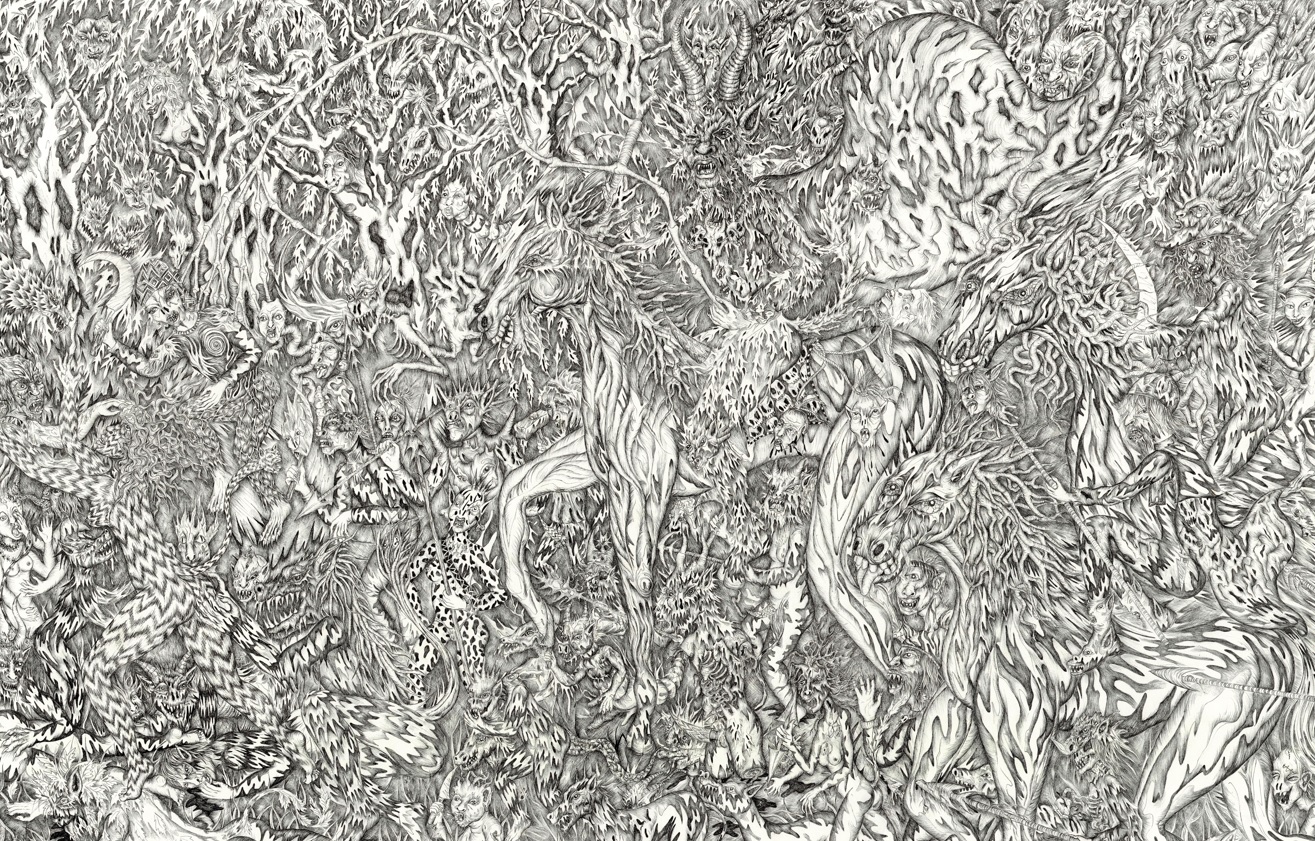 Stéphanie Sautenet est tellement inspirée quand elle parle de son travail qu’il m’est difficile d’écrire ici d’autres mots que les siens. Elle dit qu’elle appréhende le dessin comme un aveugle. Tout est déjà dans le choix du verbe « appréhender » qui évoque à la fois le commencement toujours renouvelé et la peur de cet inexploré. Cette peur est celle de chaque dessin comme trace d’un voyage entre le monde des morts et celui des vivants. Elle précise encore : « tout dessin est un masque, une fenêtre ouverte sur la mort ». j’ai écrit qu’elle « précise », mais qu’elle dessine ou qu’elle écrive, Stéphanie Sautenet complexifie à mesure quelle précise. La trace est aussi un masque, le dessin révèle et cache. Ce paradoxe connu ne nous préparait pas à celui qu’elle fait suivre aussitôt, une fenêtre ouverte sur la mort. Dans les imaginaires des peuples qui ont cherché à se le représenter, le monde des morts est souterrain, sans lumière ni terre autre que stérile. Pour Stéphanie Sautenet, la mort est aérienne et les morts volent dans la lumière. Pas d’enfer, que du ciel ? Son trait de crayon est léger mais sa précision est celle du scalpel qui écorche vif. Sensualité et douleur. Sauf en rappel de la tradition de la vanité, la mort n’est pas dans le dessin mais elle l’encadre. Elle dessine une vie d’intensité extrême, humaine et animale mêlées, mais une vie menacée, la vie de l’œuvre saturée qui ne peut plus supporter une écorchure de plus. On retrouve la densité du dessin dans l’écriture poétique de Stéphanie Sautenet. Sur son site, un poème d’elle où le Bernard Noël de « la peau et les mots » pourrait reconnaître une âme sœur. Sublime. Et elle signe « Ssoloeil », loin du tombeau.