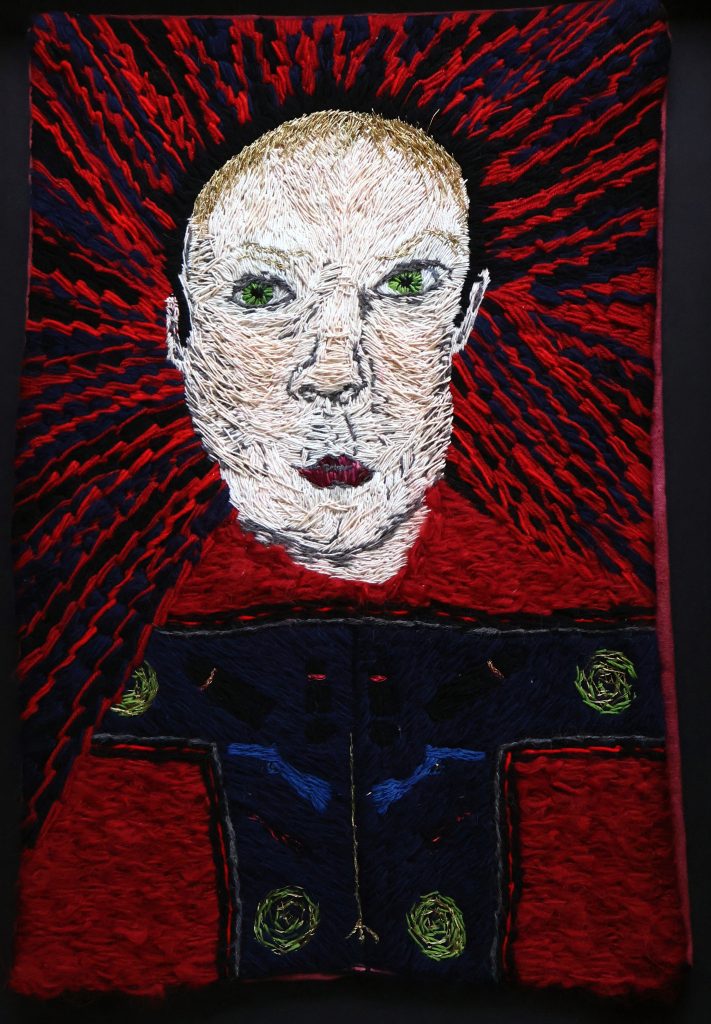 Son père était pianiste de jazz, elle-même se destinait à être pianiste, jusqu’à son premier concert qui sera le dernier. Elle est incapable de jouer en public. Mary Lou Freel ne m’a jamais dit quelle musique elle écoute quand elle coud, elle qui a arraché ses doigts à son piano pour les mettre au service du travail répétitif de la broderie, mais quand je regarde l’ensemble de son oeuvre, j’entends le mélange de musique et de chant baroques et contemporains créé par Simon Pierre Bestion avec son ensemble instrumental et vocal « La tempête » et tous ces âges de l’humain entrent en moi tandis que j’entre dans l’histoire de cette pianiste recroquevillant ses doigts sur des aiguilles dans le silence laineux, cotonneux et soyeux de son art.